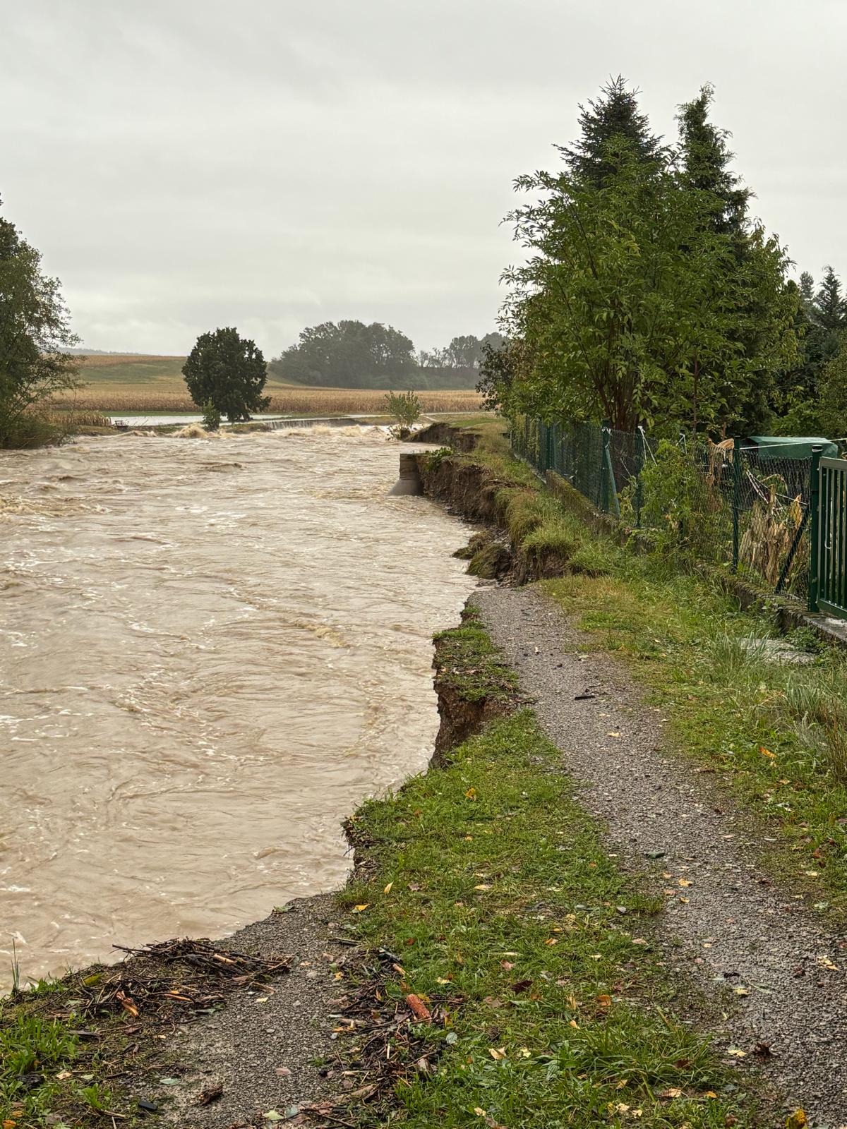 Vor zwei Wochen trat der Stössingbach und Michelbach über seine Ufer und viele Gebiete unserer Region waren stark betroffen. Das Grundwasser stieg und enorme Mengen an Oberflächenwasser strömten von umliegenden Äckern und Wälder in Wohnungsgebiete. Für uns als Freiwillige Feuerwehr Ausserkasten-Furth bedeutete dies über 70 Einsätze - von Menschenrettung aus überflutungsgefährdeten Häusern über Auspumparbeiten bis hin zu Vermurungen, die sich sogar direkt vor unserem Feuerwehrhaus ereigneten.